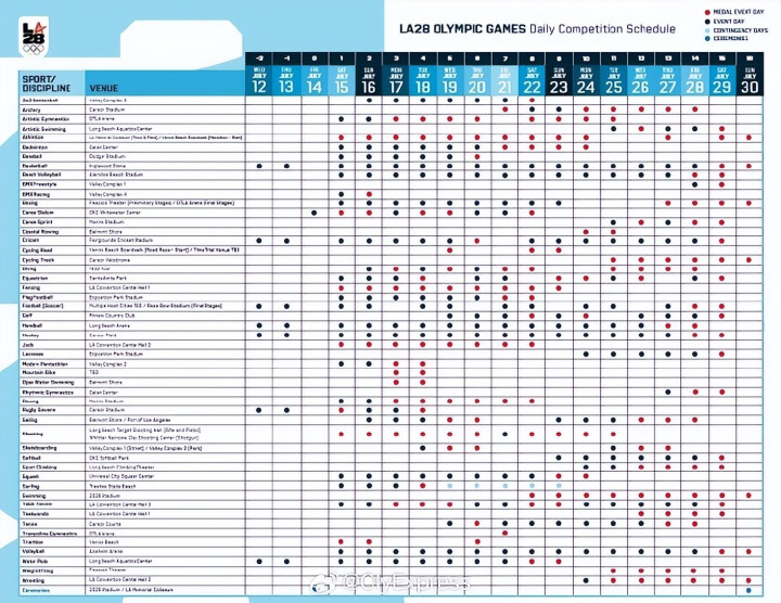 北京时间7月15日,2028年洛杉矶奥运会公布了具体的赛程。与此前多届奥运会的赛程安排不同的是,这次洛杉矶奥运会的首金项目不再是射击项目。